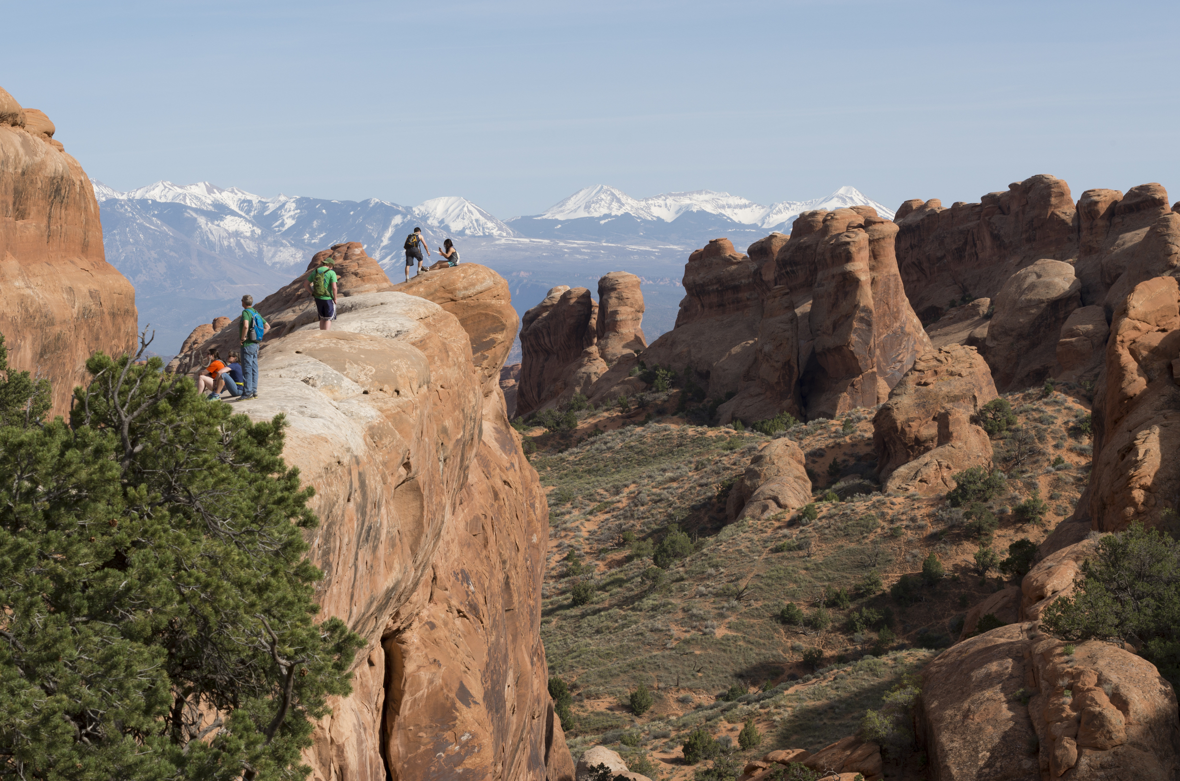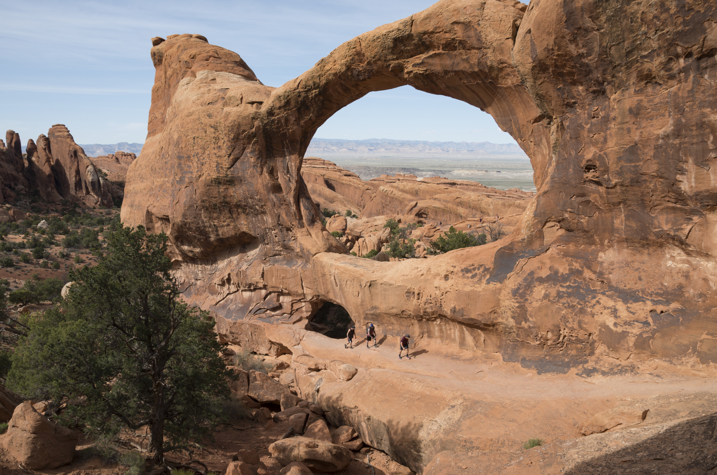 Seinen Namen hat der Park wegen seiner dutzenden spektakulären Felsbögen bekommen - "arch" heißt ins Deutsche übersetzt "Bogen". Nicht minder spektakulär sind übrigens die Wanderrouten zu den "Arches", wie etwa über die Felsrücken des "Devil's Garden" zum "Double-O-Arch". Das setzt natürlich voraus, dass man nicht nur die Felsbögen ansteuert, die die Amerikaner mit einem eigenen Parkplatz ausgestattet haben.